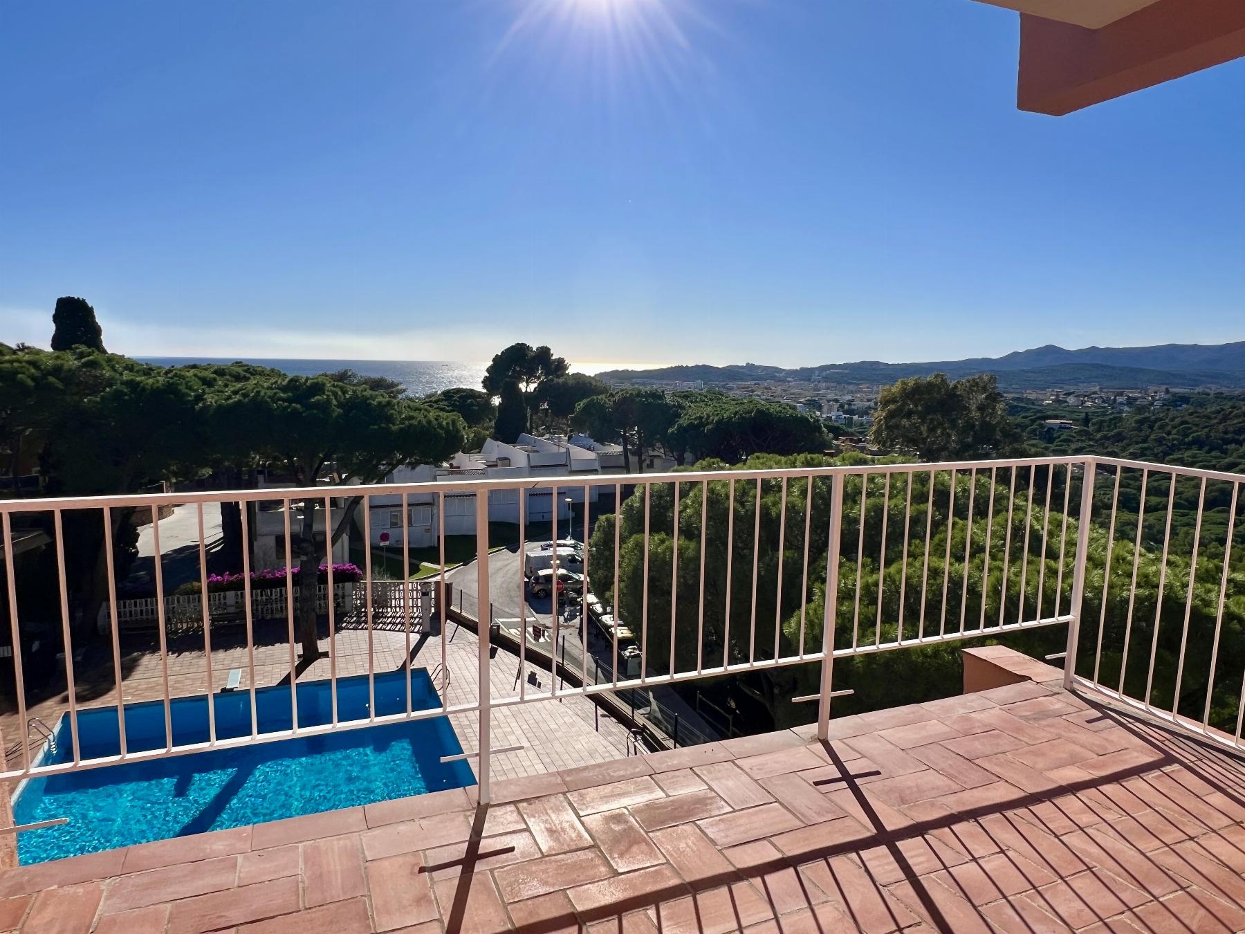 A bright home with sunlight all day long and panoramic views of the sea, the mountains, the town and the beautiful communal garden with natural grass and pine trees. From the living dining room and its spacious terrace you will enjoy both sunrises and sunsets during your morning coffee or lunch and dinner with loved ones overlooking the Costa Brava at its finest, just a few minutes` walk from the beach and the town centre.